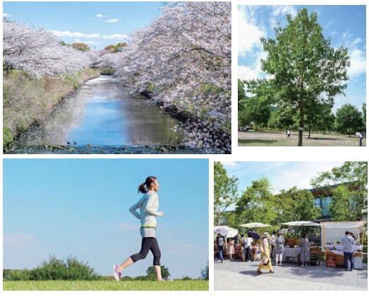 海老川沿いには公園が整備され、地区施設に設定された広場が緩やかにつながり、散歩やジョギング、子どもの外遊びなどにも最適なエリアになります。