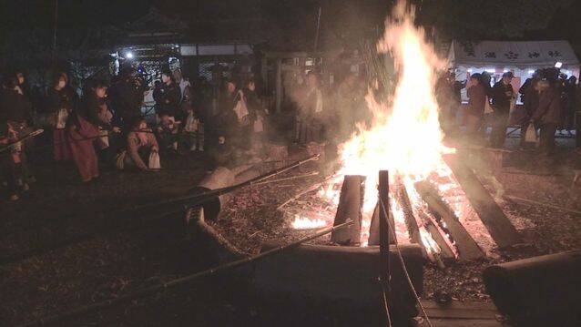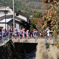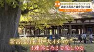鎌倉時代の作とされる境内の石造十三重塔は重要文化財で、秋にはイチョウ、春には拝殿脇のシダレザクラが季節の移ろいを感じさせる。氏子の男性は「枝が折れるなど老木になってきたが、毎年葉が色付くのを楽しみにしている人も多く、神社の象徴の一つであることに変わりはない」と木を見上げていた。