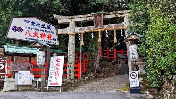 同神社は元々、西に約2キロ離れた長田の三軒家地区の「射手山」にあり、天正伊賀の乱(1581年)で焼失後、かつて寺院があった現在地に移されたと伝わる。棟札には「慶長十年」(1605年)と記され、神紋は「三つ銀杏」だが、詳しい樹齢などは分かっていないそうだ。