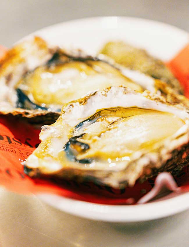近海の厳選した大ぶりの牡蠣を提供する牡蠣料理専門店・牡蠣屋 。焼き牡蠣、牡蠣めし、牡蠣フライオイル漬けや佃煮、味噌汁まで揃う牡蠣尽くしの牡蠣屋定食2,600円は必食。看板メニューの焼き牡蠣は、高温で一気に火を通すことでうまみを閉じ込め、プリッとジューシーな食感に仕上げる。調味料は使わず素材本来の味を堪能したい。焼き牡蠣はテイクアウト1個350円も。