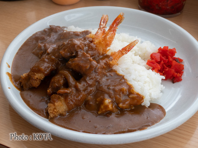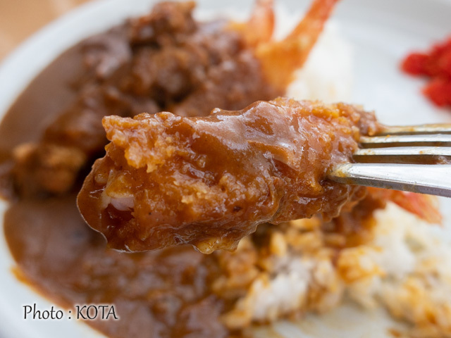 エビフライは特段大きい!! とまではいかないが、ちょっと厚めな衣がルウに馴染んで程よいボリューム感に。