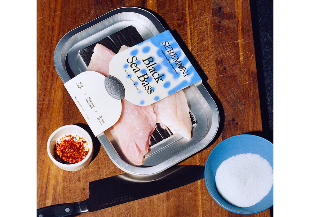 セレモニ社の小売用バッケージ。サステナビリティを意識し、現在魚はロックフィッシュほか、従来見過ごされてきた品種6品を扱っている。