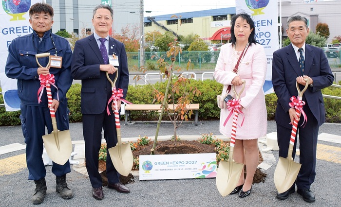 植樹は「GREEN×EXPO2027」の開催500日前を記念して行われたもの。苗木は横浜市内外各地で植樹を進める「シドモア桜の会横浜」から寄贈され、高橋区長や同会の梅本千晶代表理事、磯子土木事務所の黒羽根能生所長、堀割川魅力づくり実行委員会の原国晃会長らが植樹式に出席した。