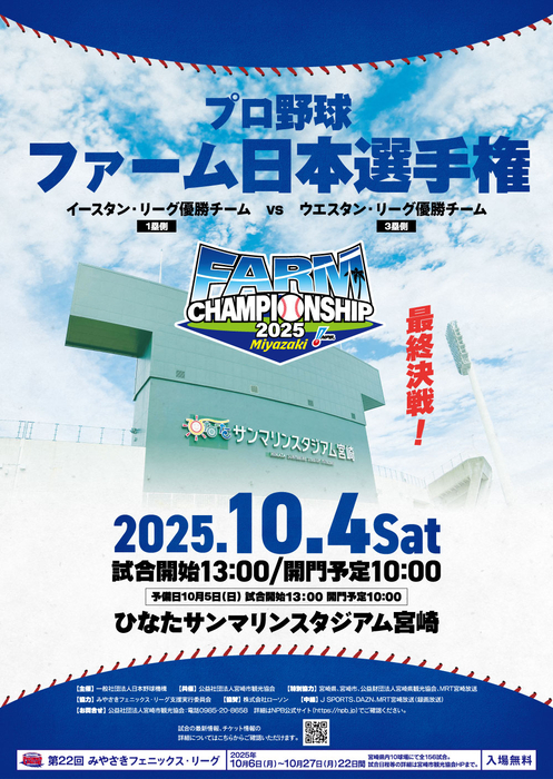 『2025年プロ野球ファーム日本選手権』が10月4日(土)、ひなたサンマリンスタジアム宮崎(宮崎県)で行われる。イースタン・リーグからは読売ジャイアンツが出場し、9年ぶり9度目のファーム日本一をかけて中日ドラゴンズと対戦する。