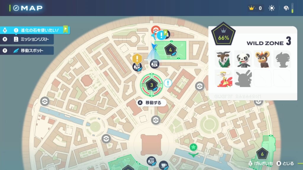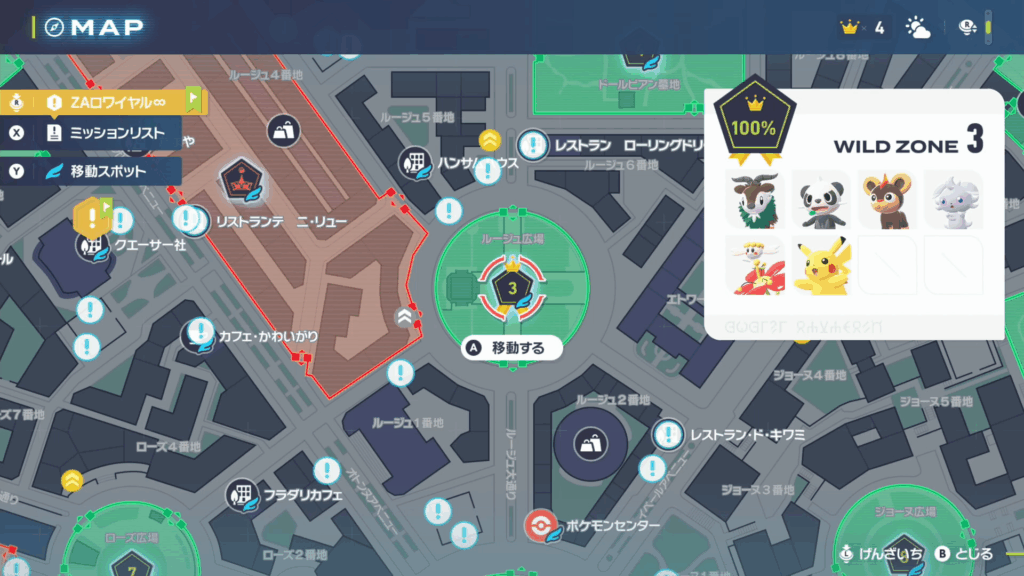 ワイルドゾーンのポケモンを全て捕まえると、登場ポケモンのリストの左上に100%と表示されます。