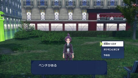ベンチはポケモンと接敵中でも使用でき、「時間をつぶす」を選択することで、「昼と夜を即座に変更する」ことが可能です。
