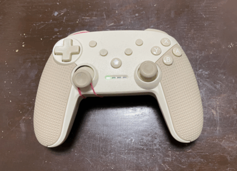 左のジョイコンのスティックを輪ゴムで下向きに固定し、右のジョイコンのAボタンを連打します。