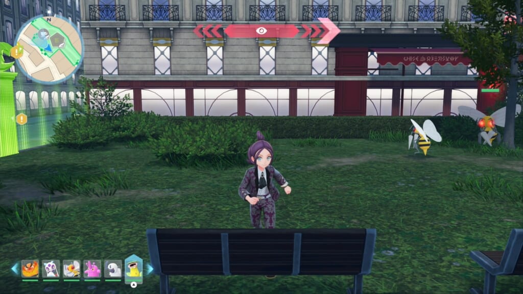 付近にポケモンが出現するベンチがある地点へ移動します。