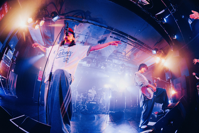 そんな言葉とともに曲を紹介したNouchiに応えるようにKoshiがヘヴィなギターリフを鳴らしたその「ルーツの1曲」とは、映画『BECK』の劇中バンド、BECKの曲だった、これこそがミクスチャーロックと言える「EVOLUTION」。Nouchi、Menu、Emma、そして再びNouchiとボーカルを繋げ、Koshiがギターをかき鳴らしながらソロを奏で、フレーズを思いっきり泣かせる。