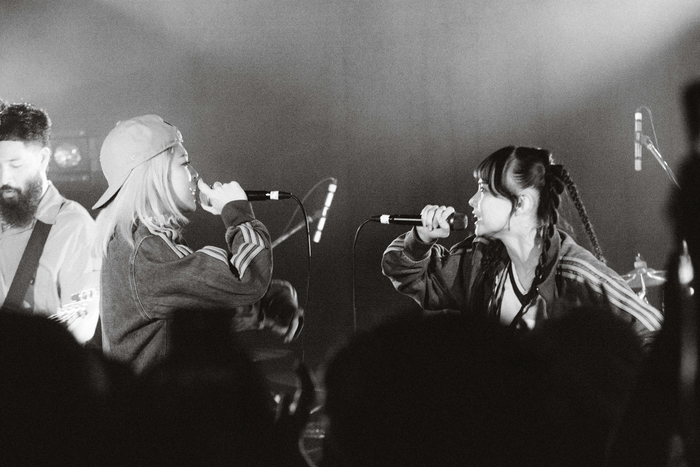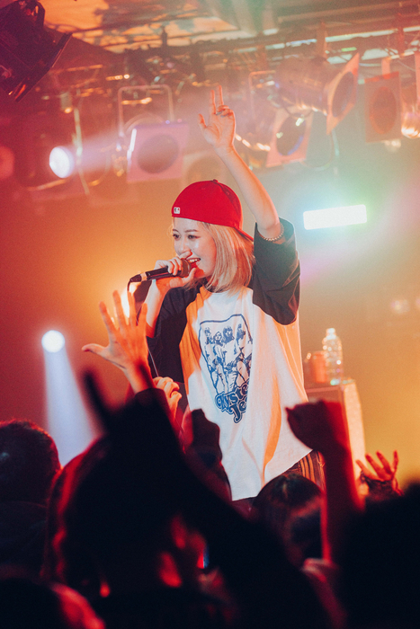 「ヘドバン大会したいと思います!」とEmmaが繋げた「Headbang Baby。観客はもちろんヘッドバンギングで応えたが、凄みを見せつけた2人のドープなラップも聴きどころ。