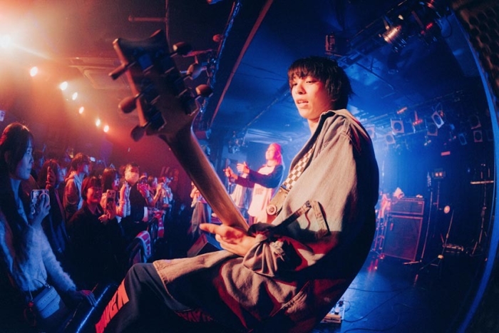 「みんなで楽しもう。それにはみんなに手伝ってもらわないと」と2曲目の「Boys & Boys」を演奏する前にサビのシンガロングを教えたNouchiは観客が早速上げた歌声を聴き、「バイブスが超アガッた!」とニッコリ。そして、観客のシンガロングとともにサビからなだれこむと、Nouchiは自ら飛び跳ねてみせる。観客もジャンプ! フロアが縦に揺れ始める。