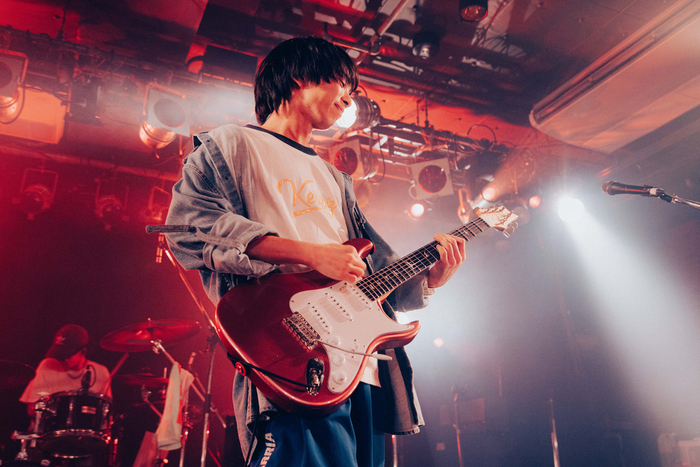 そこから歌ものとしての魅力もある「ワンウェイ」、パンクなギターリフを鳴らす「空」とアップテンポの曲をたたみかけるKannaの熱演に観客も手を振ったり、ハンドクラップを鳴らしたりしながらすっかり楽しんでいる。歌心を感じさせるNouchiのラップももちろん、フラッシーなソロフレーズやエモーショナルなプレイを曲ごとに使い分けるKoshiのギターも聴きどころだ。