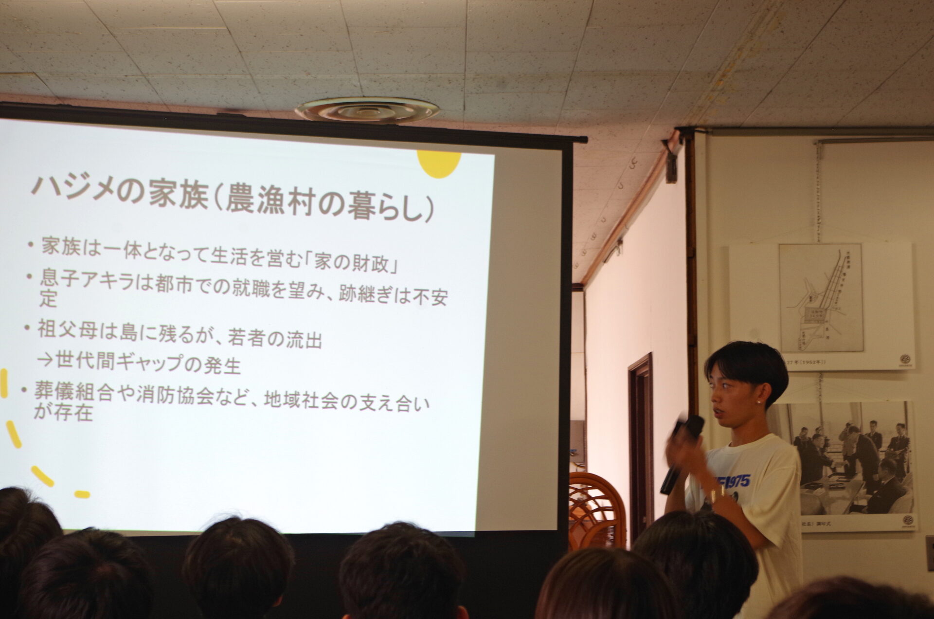 まさふみ)ゼミ」の学生が、エドワード・ノーベックの著作のなかから、高度成長期のなか、高島に住む人や、そこを離れて都会に出た人の暮らしなどが描かれている「Changing Japan(第2版)」の内容を検証することにしました。