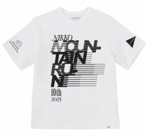 フロントには「NIKKO MOUNTAIN RUN」の文字を、左袖には「NIKKO MOUNTAIN RUNNING」のロゴ、右袖にはand wanderのブランドロゴを配置。