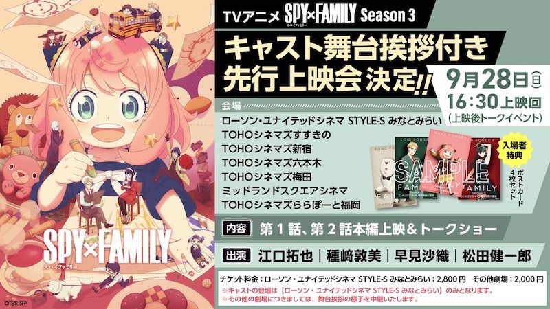 大人気TVアニメ『SPY×FAMILY』待望のSeason3、10月4日より各動画サービスにて順次配信スタート!
