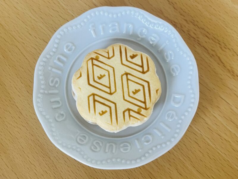 北海道美瑛産の小麦、北海道バターを使ったクッキーにホワイトショコラをサンドした焼菓子。