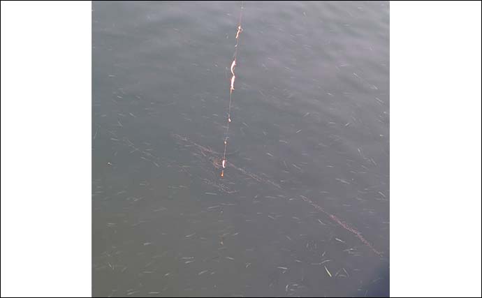 コマセは魚を寄せて、留まらせるだけでなく、潮の流れ方を確認する意味でも有効。イワシはコマセを追っていて活性がある。