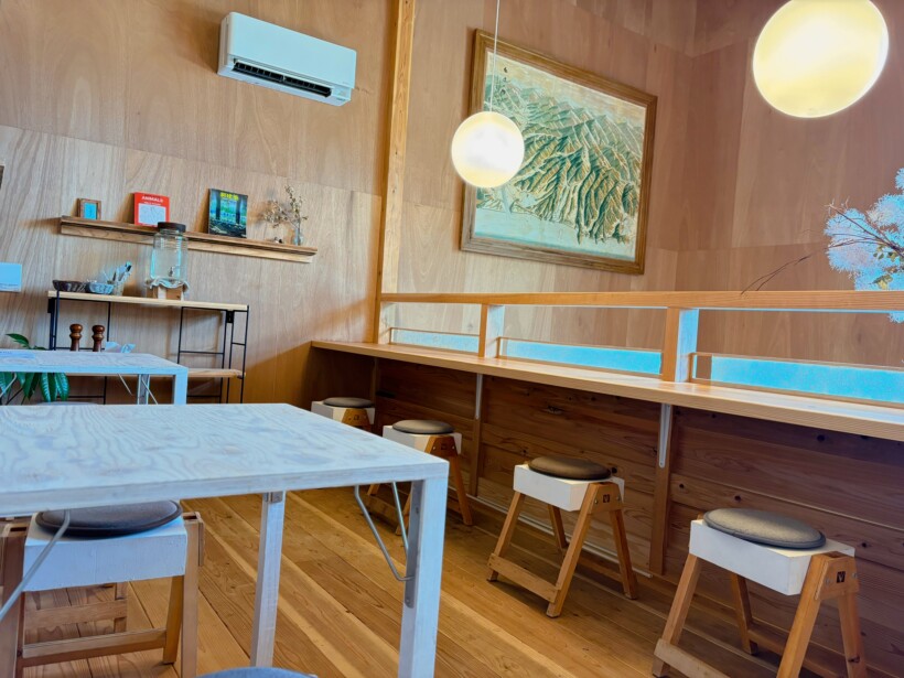 2階の階段を上ったこちらがお席になります。テーブル席とカウンターがありました。おひとり様でもゆっくりと過ごすことが出来そうです。