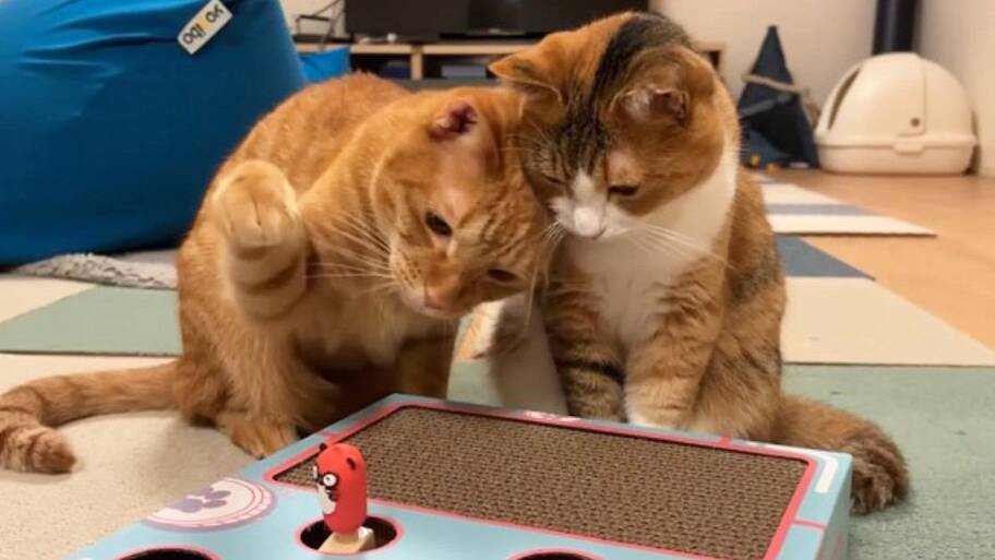 飼い主さん宅では、フイくんの妹猫「キオ」ちゃんも一緒に暮らしていますが、キオちゃんも箱に入るのが好きなのだとか。アカウントには、2人で一緒にキャットタワーでくつろいだり、別々の箱に入ってまったりしている様子も投稿されています。