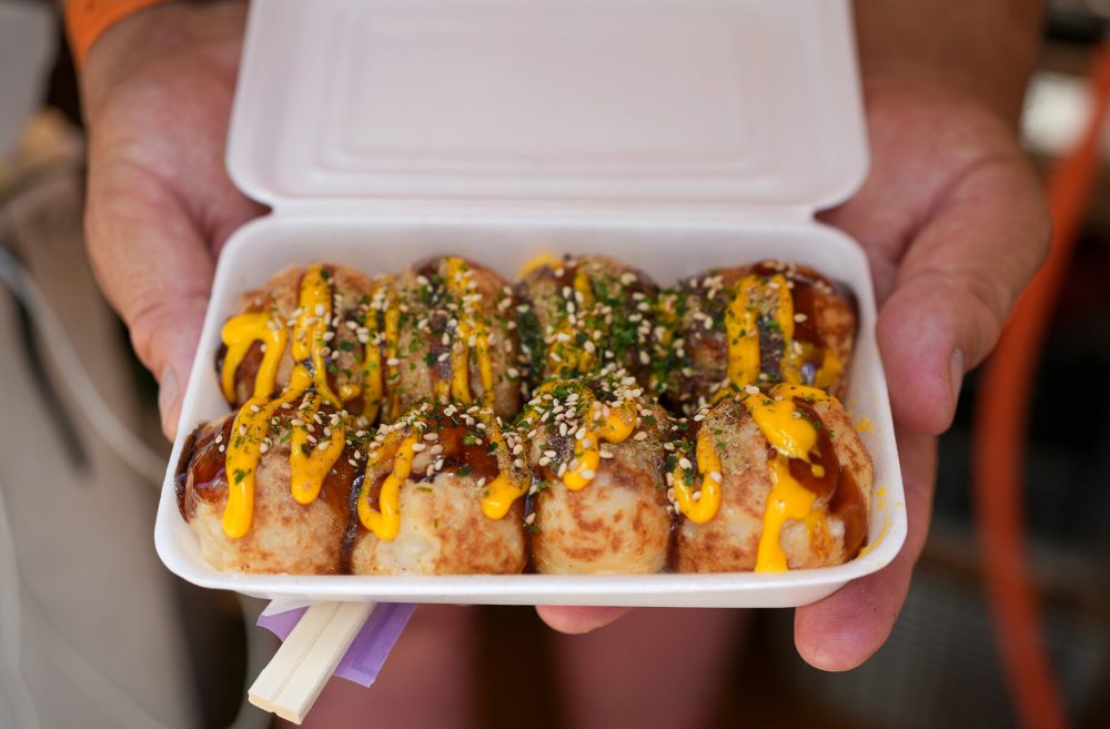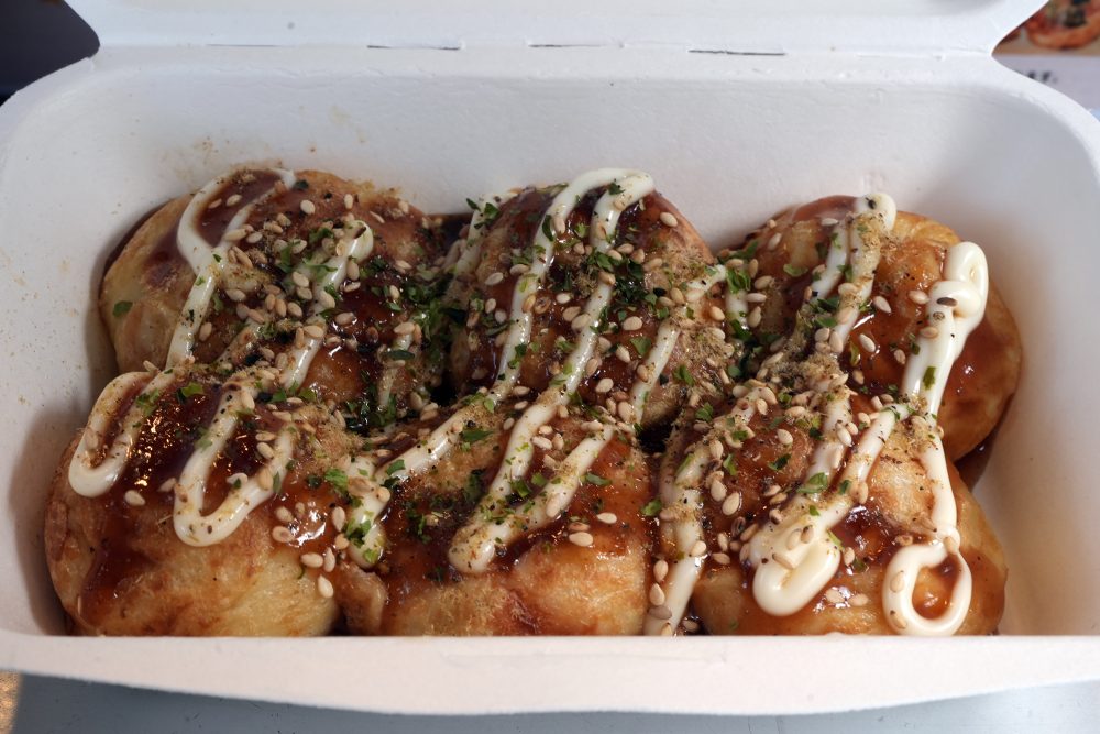 じゃんたこさんーそうです。香椎コンテナ村を運営されている仲盛さんにお世話になりました。あの日から、たこ焼きの原料を小麦から米粉に変更したんです。以前から小麦アレルギーやグルテンフリーの方へもたこ焼きを食べてもらえないかとずっと製粉会社にお願いしていて、それがちょうどあのタイミングで完成し、福岡から米粉たこ焼きを始めました。