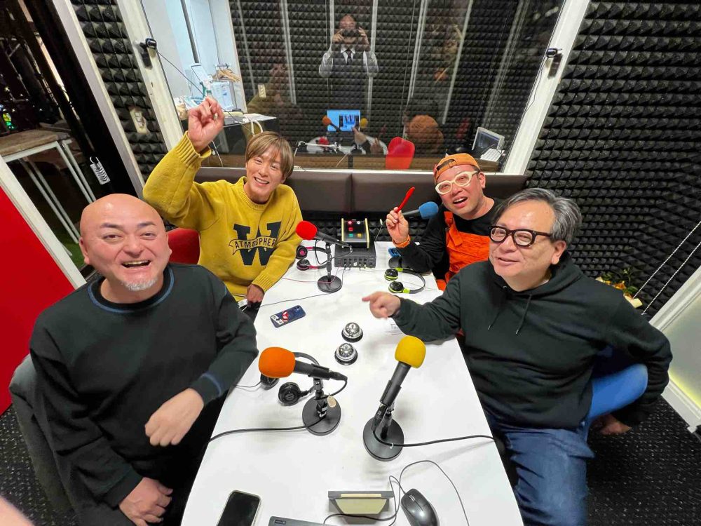 コミュニティラジオ天神に出演中のじゃんたこさん、たけるさん、デビ高橋さんと私
