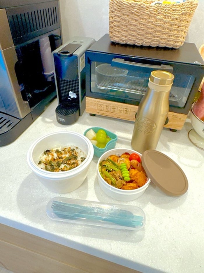 続けて、中身について「小松菜と豚肉を炒めて、大学芋 ミニトマト 枝豆とお肉以外も入れてはいますがお野菜はいらないらしいです」と説明し、ブログを締めくくった。