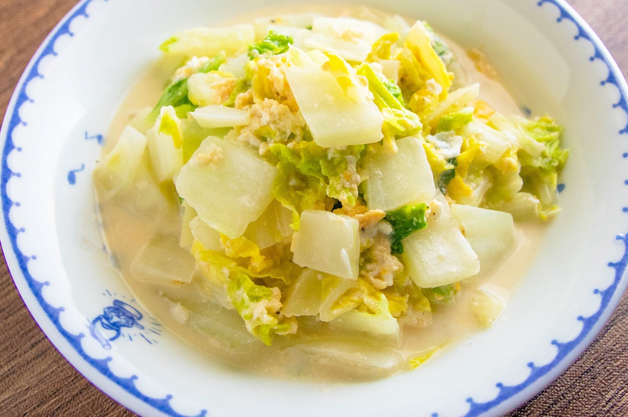 少ない材料でもバランスの良い味わいになる手軽な料理です。白菜の水分がほどよく牛乳となじみ、卵がふんわり混ざることで全体にやさしい口あたりになります。ぜひ、作ってみてくださいね♪