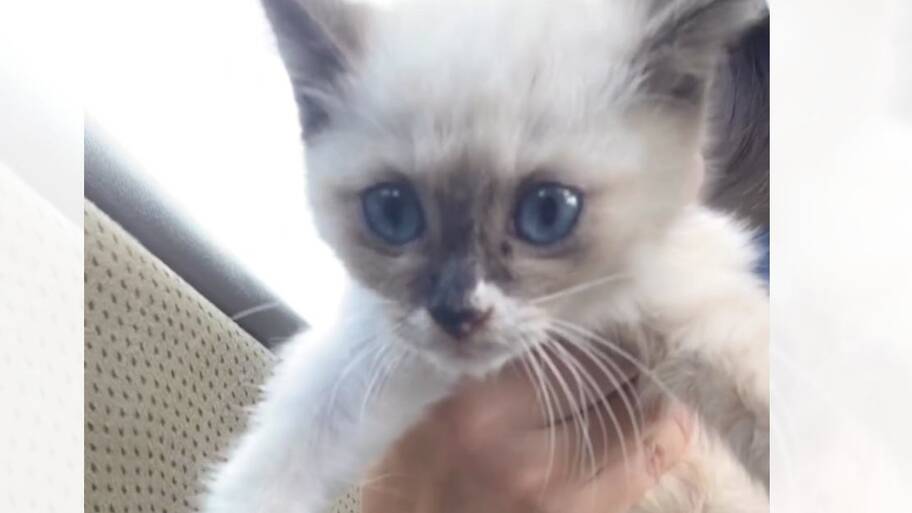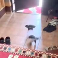 お父さんが帰宅すると、「にゃ~、にゃ~」と鳴きながら出迎えるオデコちゃん。