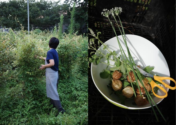「この土地の植物は生命力が強いんです」と店主・原田さん。近所の人から譲り受けた植物が庭に根を張り、日々、新しい命を育んでいます。そこで摘まれたハーブは、店で使われていて、自慢の料理に季節の香りを添えています。
