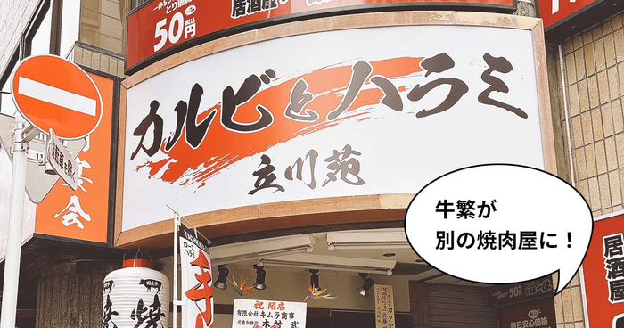 【開店】『牛繁』が別の焼肉に。立川駅北口の『牛繁 立川曙町店』跡地に焼肉屋『カルビとハラミ 立川苑』がオープンしてる
