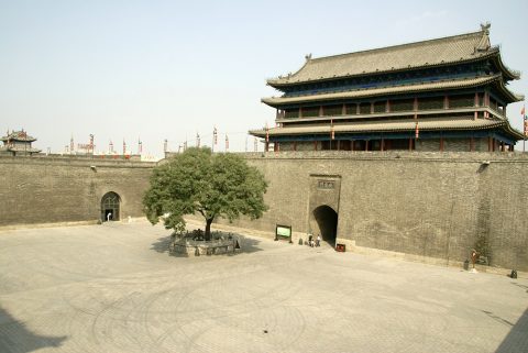 続く龍山(りゅうざん)文化後期に属する河南省(かなんしょう)王城崗(おうじょうこう)遺跡などでは、城壁の角が外側へ突出しており、後世の角楼を想起させる。春秋戦国時代斉(せい)国の都城である山東省(さんとうしょう)臨淄(りんし)古城では、数ヶ所の門部分の濠や城壁の跡が外側へ平面円形に突出するなど、後世の甕城の原型と考えられる。