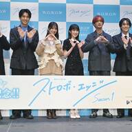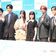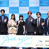 連続ドラマW-30「ストロボ・エッジ Season1」プレミア上映会に、福本莉⼦さん、⾼橋恭平さん、⼭下幸輝さん、⼩坂菜緒さん(日向坂46)、中沢元紀さん、伊野尾慧さん、千葉雄⼤さんが登壇しました。