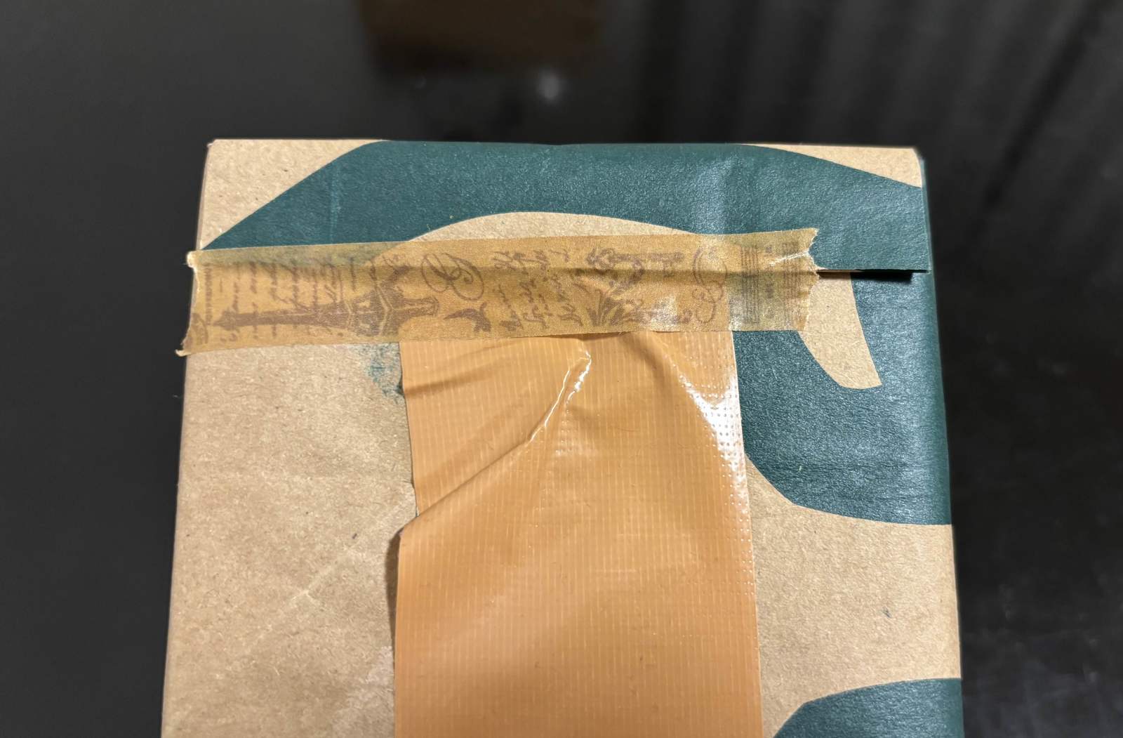 今回は目立たないカラーでブラウンのマスキングテープで止めています。