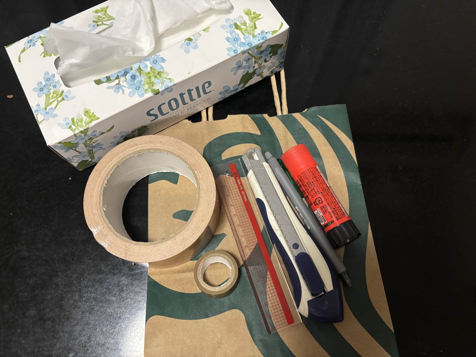 丈夫な素材でできているスタバの紙袋を使って、ティッシュボックスが作れるのだそう! では、早速作っていきましょう!
