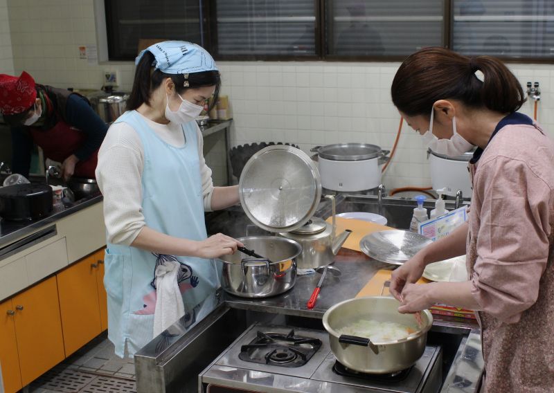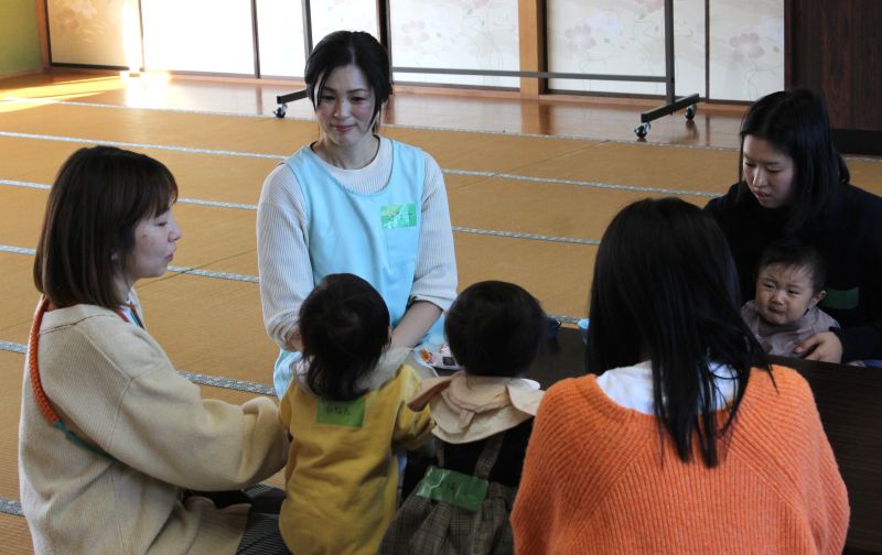 今回の会場になった西山町構造改善センターでは、早めに来たスタッフたちが調理場で食事の支度を始めた。午前10時に親子がそろい、自己紹介。上級食育指導士の山口小百合さん(57)の食べることの大切さ、小児歯科学会認定歯科衛生士の木村恵美さん(43)の赤ちゃんからの健康な歯への備えなどのやさしいアドバイスも聞いた。真剣に聞くお母さんの横で子どももすぐに打ち解け、たくさん遊ぶことができた様子だ。