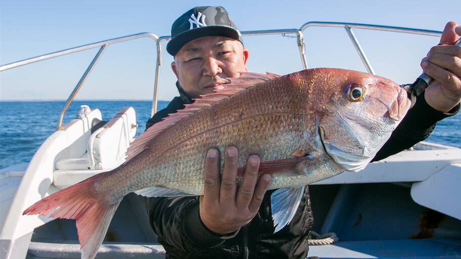 早くも心が折れそうになっていると、ロックフィッシュ狙いの赤松君がアカハタをゲットしたとのこと。気合を入れ直します。ヒットルアーは、赤のクロー系ワームのテキサスリグだというので、すぐに真似をします。
