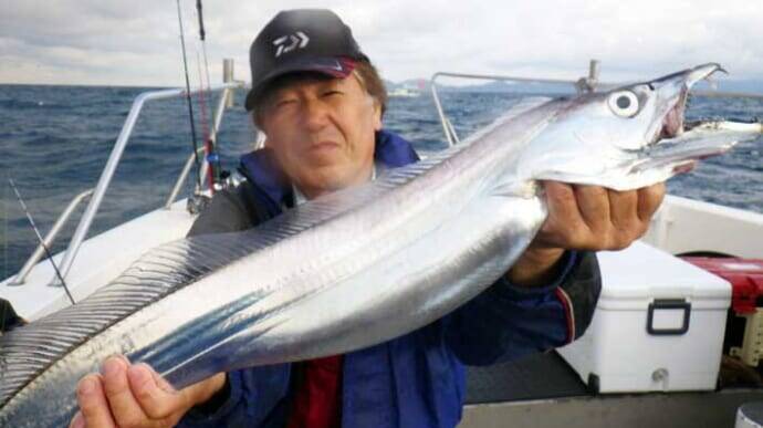 針は丸セイゴ13号に、重りはナス重り25号の捨て重り仕掛けに、サバの切り身をつけて足下に落とし込みます。竿先に鈴を付けて待つこと10秒で鈴が鳴ります。大きいサバ餌を付けているため、食い込むまで待ちます。