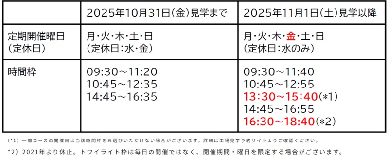 見学枠を拡大(水金定休→水のみ定休へ・1日3回→5回へ)