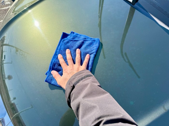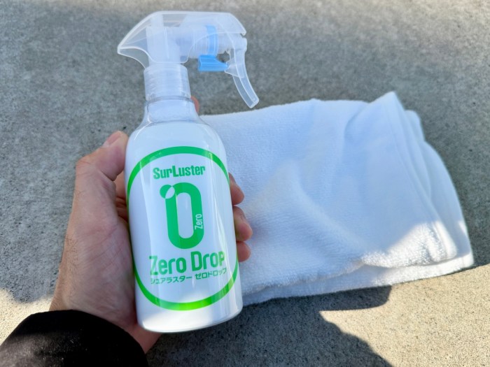 さっそく洗車してみたところ、ゼロドロップの使用感は文句なし。サッと拭き上げるだけでツヤツヤのボディに変貌する。拭き上げた瞬間から光沢が全然違う。深いツヤと輝きがボディ全体に広がって、まるで新車のような仕上がりである。