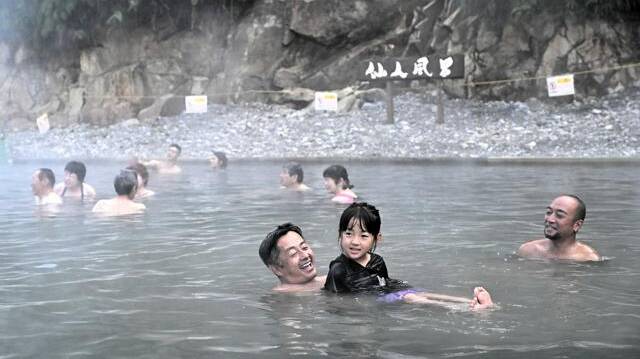仙人風呂の魅力は、そのワイルドさにあります。コンクリートで囲まれた浴槽ではなく、川そのものが湯船となっているため、日によって温度や深さが変わることもあります。しかし、その“ありのままの自然”がまさに魅力で、何度訪れても違う表情の仙人風呂を楽しめます。 巨大な“湯船”は家族連れやグループにも人気で、広々とした空間でのびのび過ごせるのも嬉しいポイントです。混浴なので水着は必須。裸の入浴は絶対ダメ!