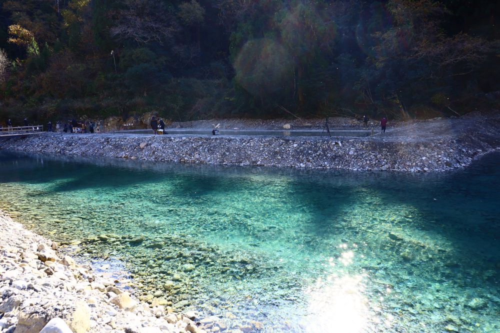 仙人風呂があるのは、大塔川の河原。川底から湧き出す温泉が豊富なため、川の一部を掘るとそのまま温かい湯が溢れ出します。普段は清流が流れる場所が、冬になると一面の巨大な露天風呂に早変わりする光景は圧巻。川面から立ちのぼる湯けむりと、静かな山々の景色が相まって、まるで異世界に迷い込んだかのような雰囲気を味わえます。