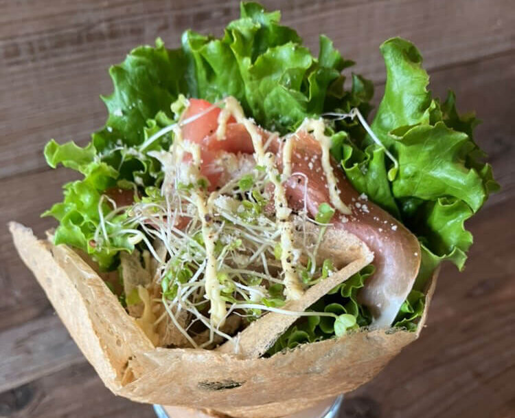 そば粉100%で作るガレットはグルテンフリーで、サラダ感覚で食べられるメニューが多いのが特徴。ブーケのように見立てたブーケガレットはヘルシーかつボリューミーで人気です。