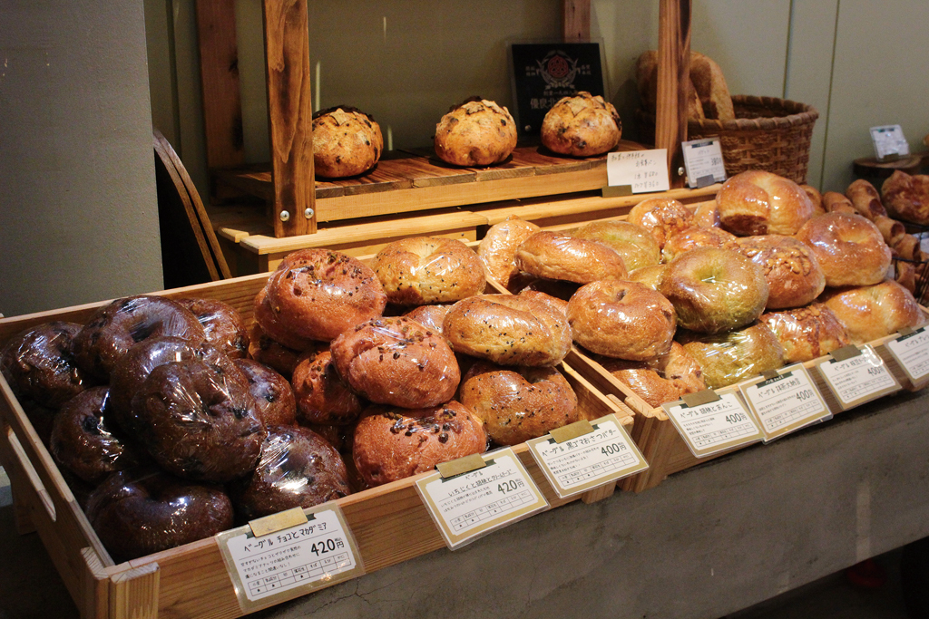 ベーグルはプレーンや枝豆チーズ、胡桃とあんこなどを含む定番7種。これから芋や栗を使った季節のベーグルも登場予定。