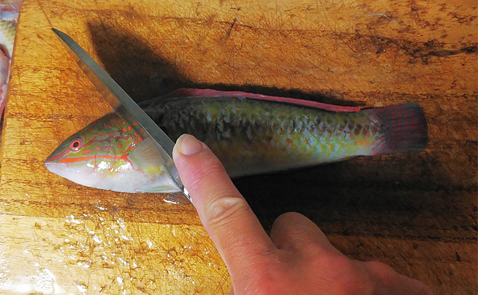 持ち帰ったキュウセンベラはウロコを剥いでいく。面倒な作業だが、「激うま」に繋がる作業なので、手を抜かずに。