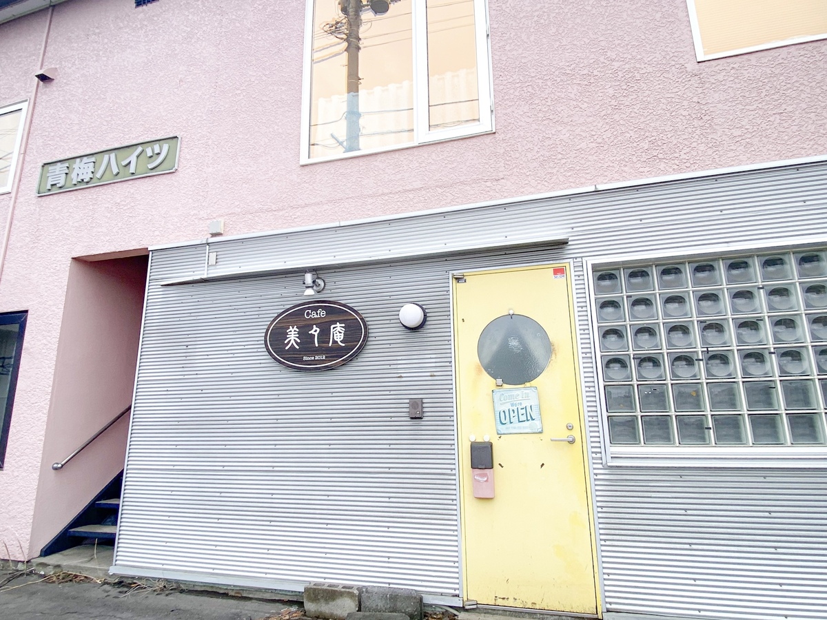 末広3条3丁目にあり、ピンク色のアパート「青梅ハイツ」の1階で、黄色の扉が目印です。