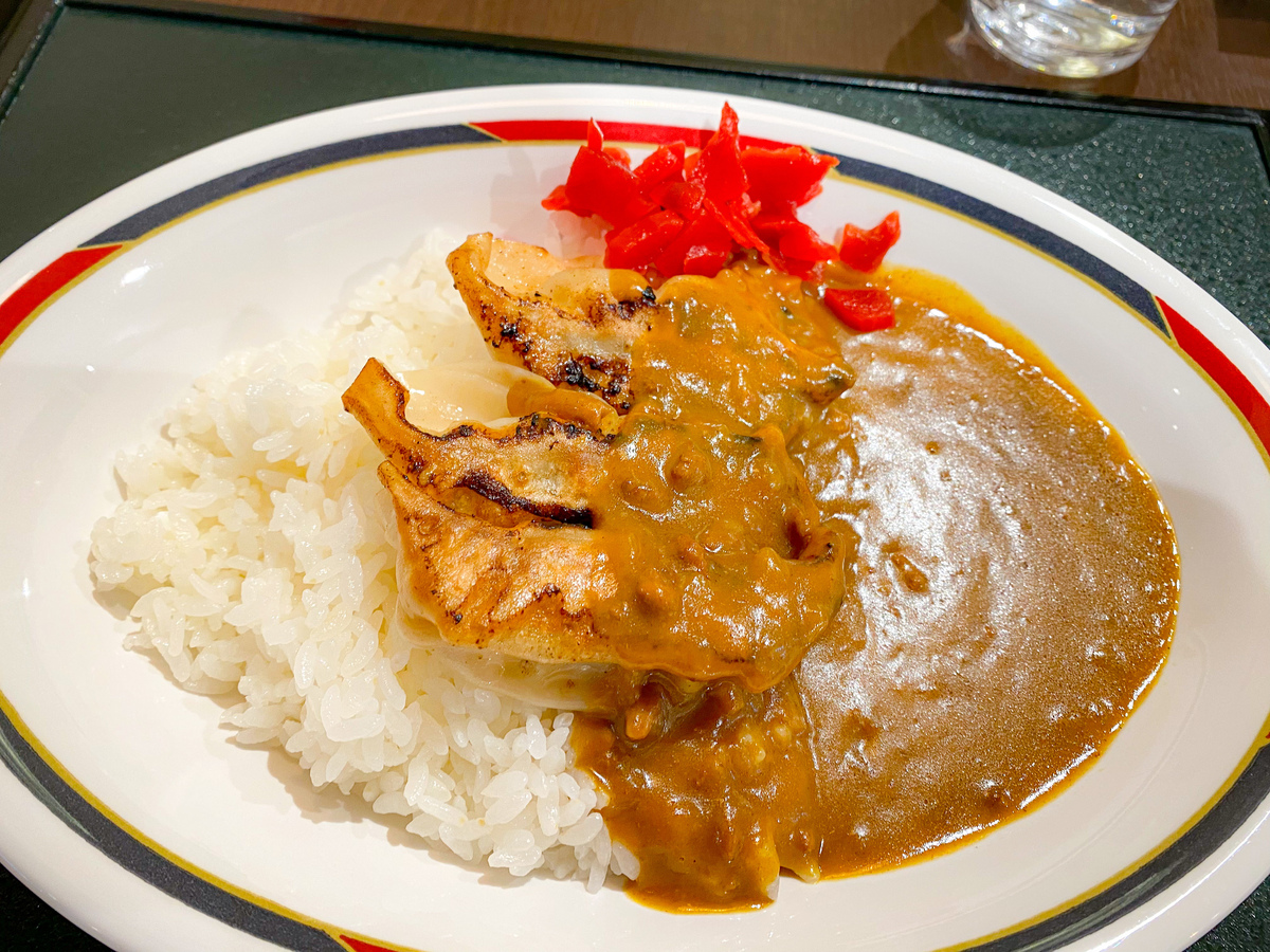 これに餃子のジューシーな肉汁がカレーに混ざると、よりコク深い味わいに変化します。