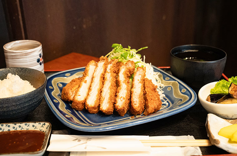 揚げたてのとんかつから、湯気とともに香ばしい香りがる『とんかつ定食』は、外はサクサク、中はふっくらジューシーなロースカツが主役。一口頬ばると、「これぞとんかつ!」と声に出したくなるほど理想的な食感と味わいです。