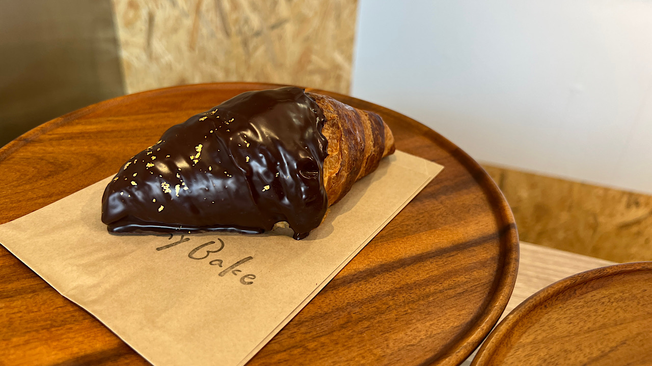 一番プレーンな見た目なのが、スウィート。こんがり焼けたクロワッサンの上に、たっぷりのチョコ、そして金箔が控えめにかかっています。