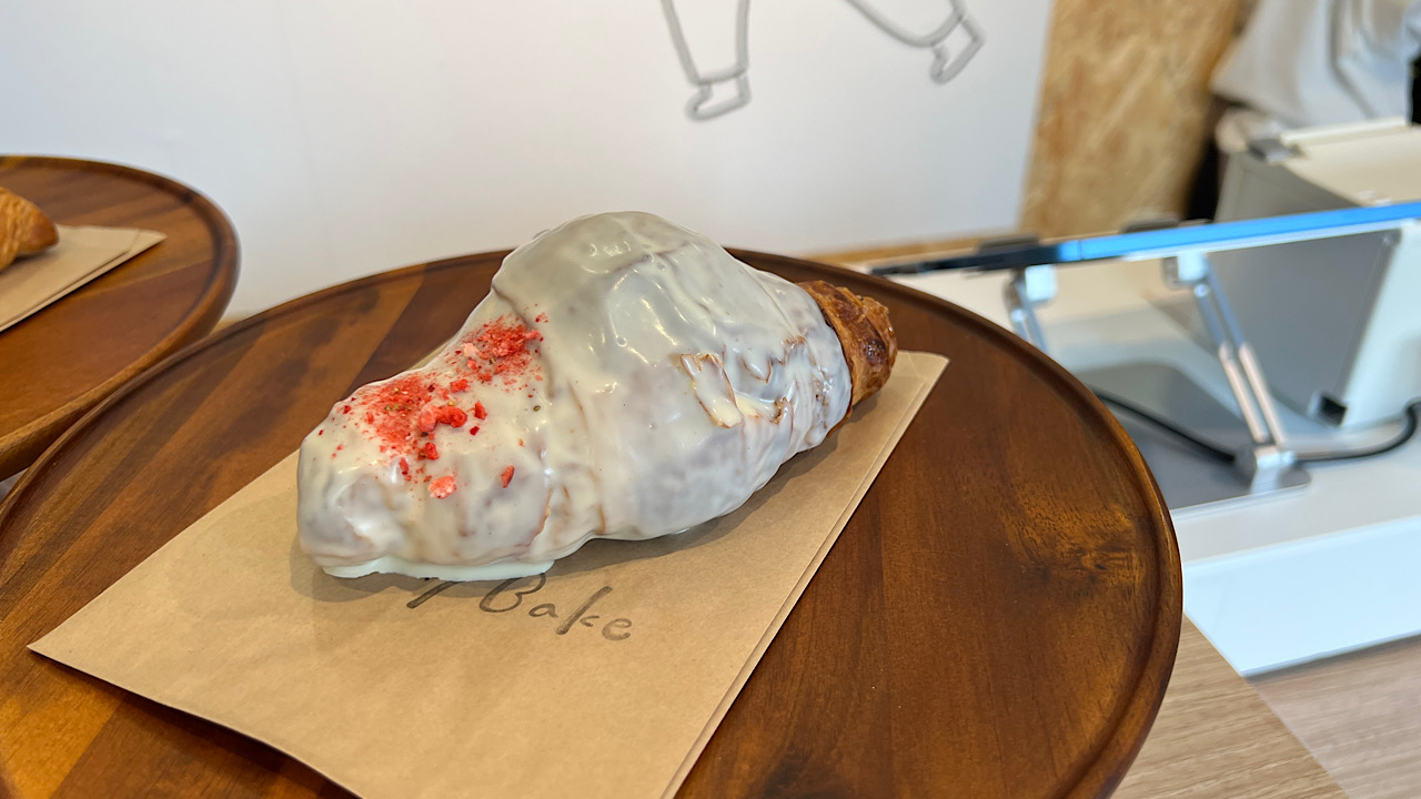 …と言いつつ、板チョコやボンボンショコラは販売してません。販売しているのはチョコレートがたっぷりかかったチョコクロワッサンだけ。
