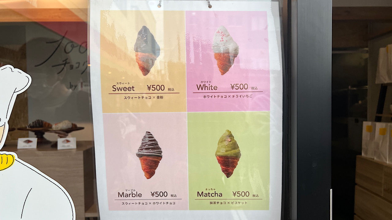 バリエーションはスウィート、ホワイト、マ―ブル、抹茶の4種類。価格はすべて500円です。